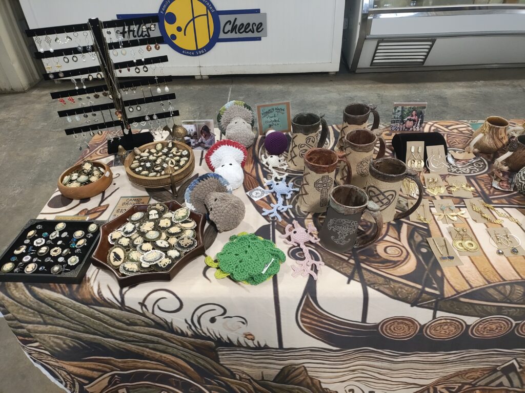 Handelssted’s “Pillaged Goods” were enjoyed by all of the guests of the Davison Framers Market. Handelssted again would like to give a big thanks to all of our artisans, Lydia’s Vintage, Weavers Ware, Twiga Design, The Silk Road Clothiers, Autumn Moon, Jennifer Meeker Ceramics, This and Such Pottery, and Flint Candle Company. Take a look at their wares on the Artisan page.