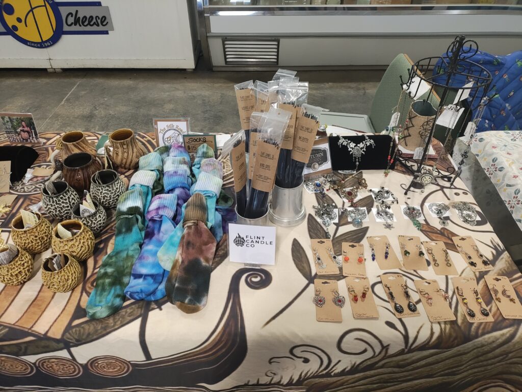 The Davison Farmers Market was a great success for Handelssted, for the winter wind was in the air. The Market was well attended by talented artisans so, Handelssted’s “Pillaged Goods” was a great complement to them. It was awesome to see everyone’s smiling faces, enjoying the winter wind, especially those of family and friends (old and new).